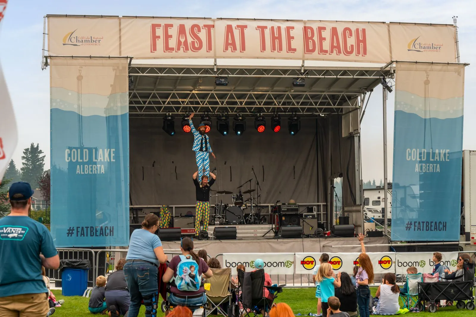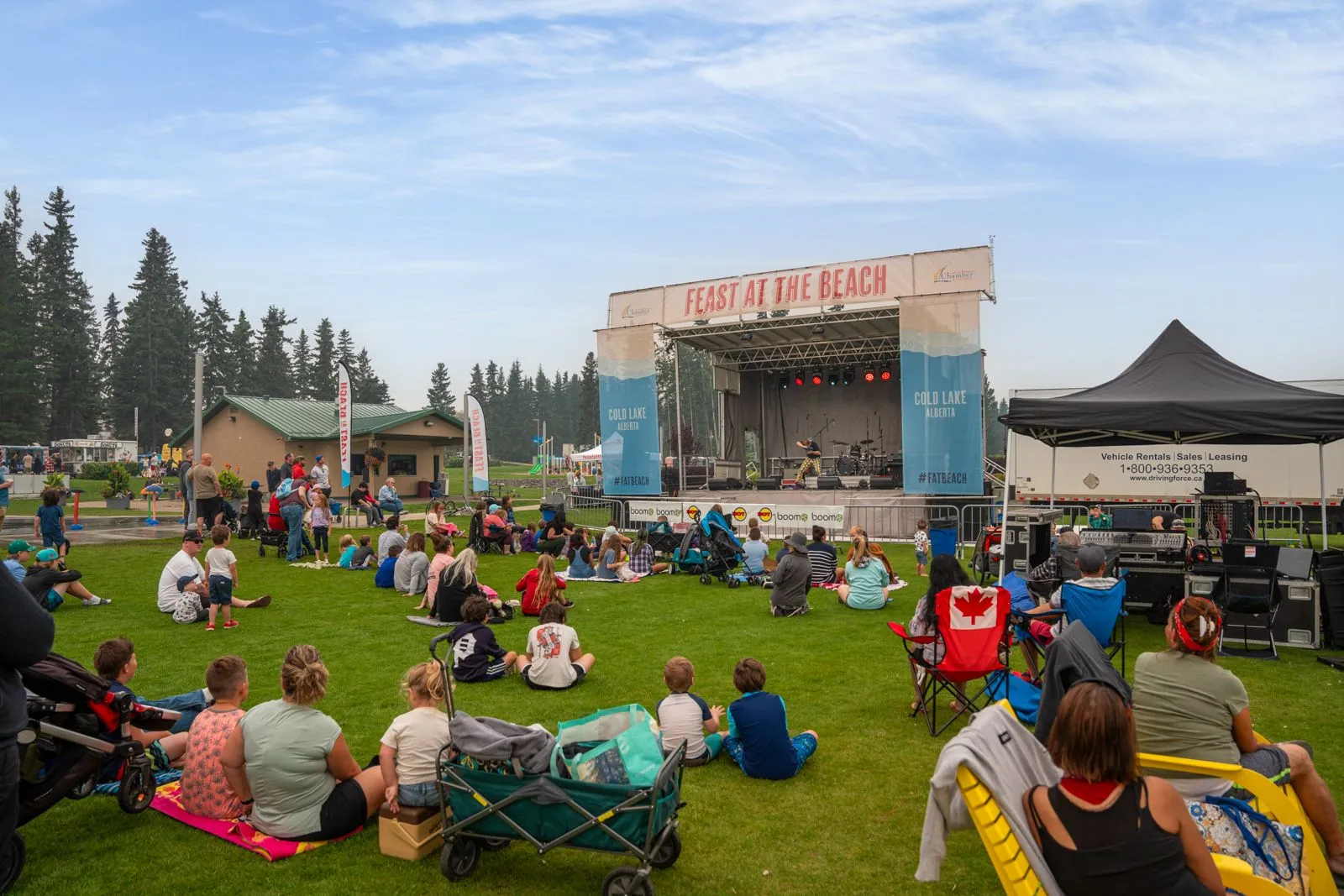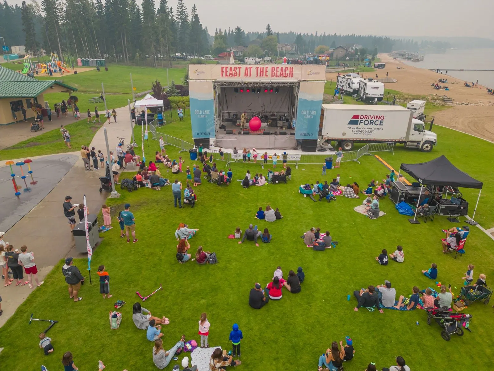 Feast at the Beach was the dream of an ambitious board of Director’s of the Cold Lake Regional Chamber of Commerce to bring a family-friendly, food and music filled, wind-down festival to the shores of Cold Lake. Kinosoo Beach was an ideal location to host all of our festival goers, approximately 10,000 people attended our two-day event over the Labor Day weekend! Attendees have a range of food trucks, from across Alberta, serving up some delicious food. They are able to sit on the beach or in the beer gardens and listen to the amazing bands and music, and for families, we have the Kid Zone which offers endless entertainment for kids. There is something for everyone at Feast at the Beach!