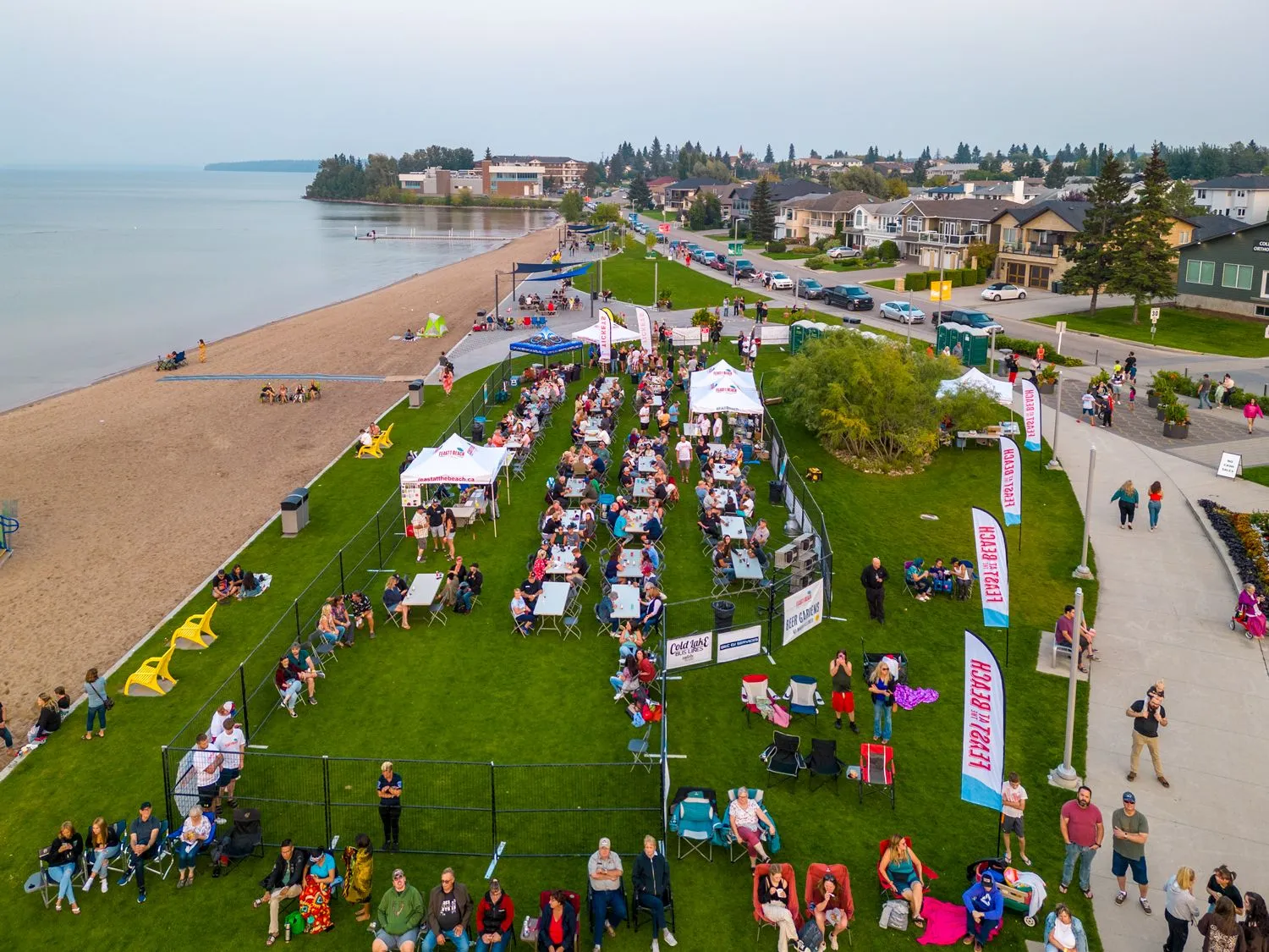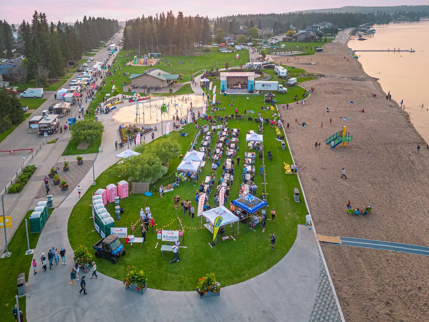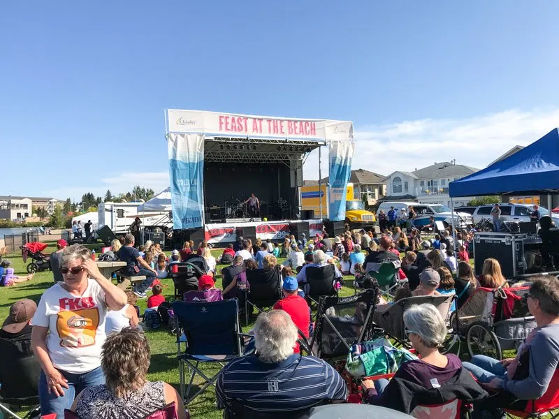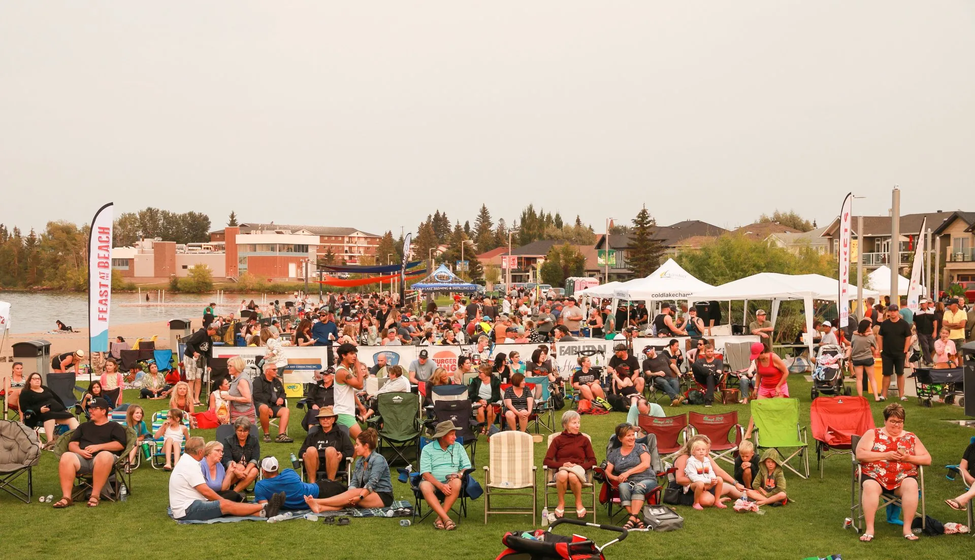Feast at the Beach was the dream of an ambitious board of Director’s of the Cold Lake Regional Chamber of Commerce to bring a family-friendly, food and music filled, wind-down festival to the shores of Cold Lake. Kinosoo Beach was an ideal location to host all of our festival goers, approximately 10,000 people attended our two-day event over the Labor Day weekend! Attendees have a range of food trucks, from across Alberta, serving up some delicious food. They are able to sit on the beach or in the beer gardens and listen to the amazing bands and music, and for families, we have the Kid Zone which offers endless entertainment for kids. There is something for everyone at Feast at the Beach!